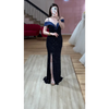 Elegantes Abendkleid in Dunkelblau mit funkelnden Pailletten. Figurbetonte Passform mit kurzem Arm, hohem Beinschlitz und verstellbarer Schnürung am Rücken. Perfekt für einen glamourösen Auftritt.