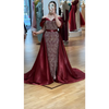 Luxuriöses Abendkleid in edlem Bordeaux, aus hochwertigem Stoff mit eleganter Schleppe. Ideal als Henna-Abendkleid, Verlobungskleid oder für festliche Anlässe. Ein zeitloses Design für einen unvergesslichen Auftritt.