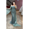 Dieses atemberaubende Abendkleid in einem eleganten Mintgrün ist ein wahrer Blickfang. Das enganliegende, bodenlange Design ist über und über mit glitzernden Pailletten und Perlen verziert, die in einem stilvollen Muster angeordnet sind und bei jeder Bewegung funkeln. Die schulterfreie Silhouette wird durch einen elegant drapierten Schal ergänzt, der von den Schultern fällt und dem Kleid eine zusätzliche Dimension von Raffinesse und Drama verleiht. Perfekt für Galas, Hochzeiten oder andere festliche Anlässe, bei denen Sie im Mittelpunkt stehen möchten.
