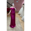 Langes Abendkleid aus edlem Satin in strahlendem Fuchsia. Mit hohem Schlitz, elegant fallendem Oberarm und freiem Halsausschnitt. Das Oberteil ist leicht drapiert mit zartem Rouge-Effekt, an der Seite ergänzt durch eine stilvolle Schleppe. Ein sehr eleganter Look – perfekt für Abiball, Verlobung, Hochzeitsgäste oder andere festliche Anlässe.