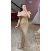 Kurzbeschreibung: Dramatisches Off-Shoulder Ballkleid in Nude