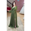 Ein romantisches und dramatisches Maxikleid in intensivem Olivgrün.