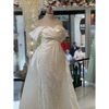 Dieses traumhafte Kleid vereint moderne Eleganz mit einem Hauch von Glamour. Das figurbetonte Design mit feiner Perlenstickerei und funkelnden Details schmeichelt jeder Silhouette. Der zarte Off-Shoulder-Ausschnitt und der edle Überwurf aus Satin verleihen dem Kleid einen einzigartigen, romantischen Look. Perfekt für die standesamtliche Trauung oder einen unvergesslichen besonderen Anlass.