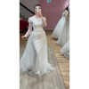 Elegantes Standesamtkleid im geraden Schnitt – leicht und edel. Feiner Stoff mit Perlen und Pailletten verziert, wunderschöner Halbkragen, lange Ärmel und abnehmbare Schleppe für einen flexiblen Look.